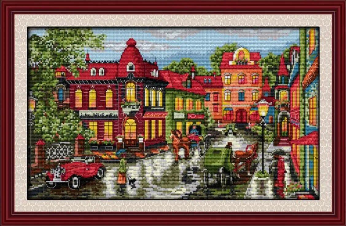 Набір для вишивання за нанесеною на канву схемою "A corner of the city".AIDA 14CT printed , 46*30 см