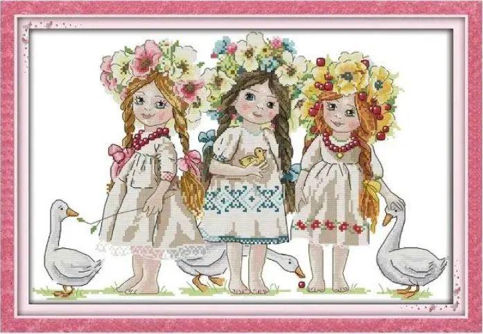 Набір для вишивання за нанесеною на канву схемою "Young girls". AIDA 14CT printed, 46*32 см